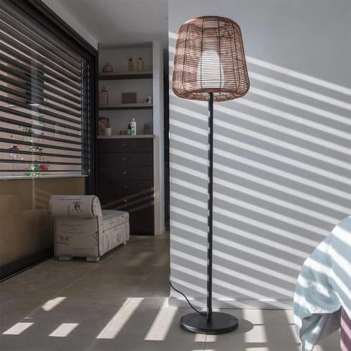 A la fois luminaire et objet déco, ce lampadaire filaire illuminera votre décoration et rendra votre intérieur ou votre extérieur plus accueillant. Il pourra trouver sa place dans un salon, une chambre, une entrée ou sur une terrasse. On aime son design épuré qui se compose d’un pied en acier et d’un abat-jour en polyrotin. Cette matière apporte un côté bohème très actuel. La structure ajourée de l’abat-jour laisse passer la lumière pour créer un beau jeu d’ombres lorsque la lampe est allumée. Résistant aux éclaboussures et aux UV, ce lampadaire peut être utilisé sans risque à l’extérieur pour éclairer toutes vos soirées dans votre jardin.