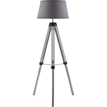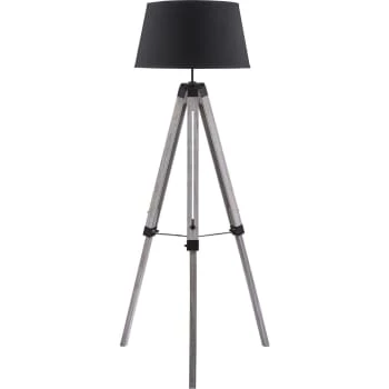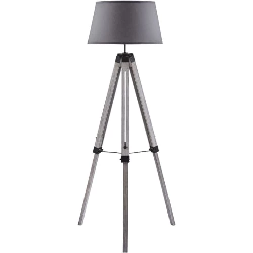 Maisons Du Monde Lampadaires Lampadaire En Bois Noir, Gris Et Beige, Abat-jour En Lin H154