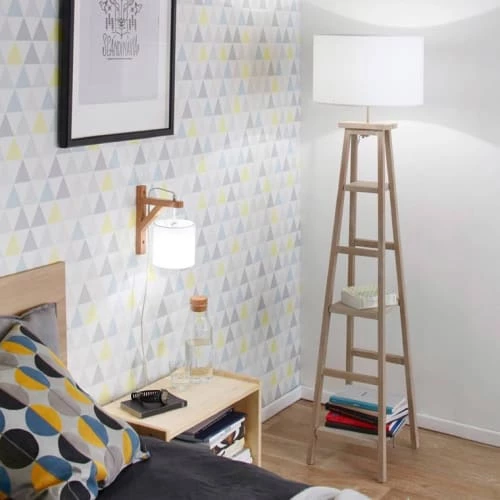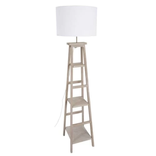 Maisons Du Monde Lampadaires Lampadaire En Bois De Manguier Et Abat-jour En Lin Et Rotin Beige H166