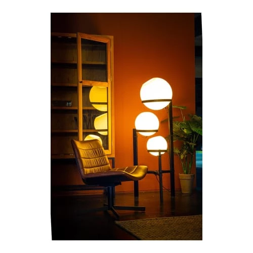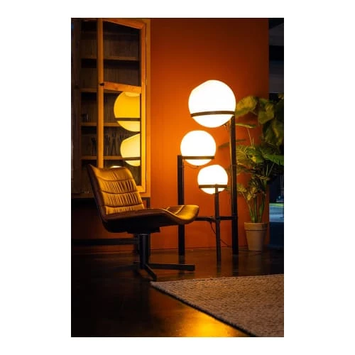 Maisons Du Monde Lampadaires Lampadaire En Bois Noir, Gris Et Beige, Abat-jour En Lin H154