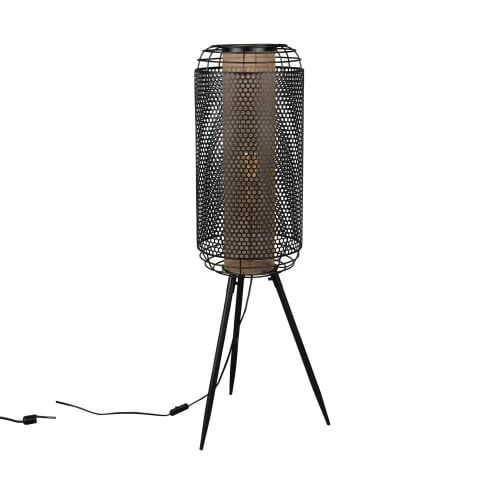 Maisons Du Monde Lampadaires Lampadaire En Bois De Pin Beige Et Abat-jour En Lin Recyclé H149