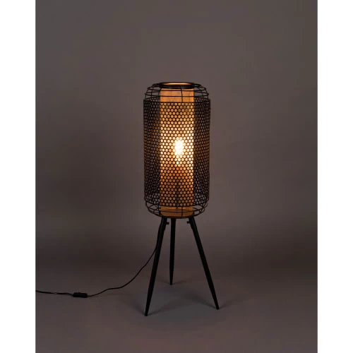 Maisons Du Monde Lampadaires Lampadaire En Bois Noir, Gris Et Beige, Abat-jour En Lin H154