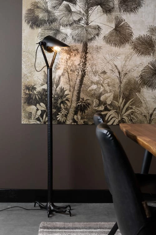 Maisons Du Monde Lampadaires Lampadaire En Bois De Manguier Et Abat-jour En Lin Et Rotin Beige H166