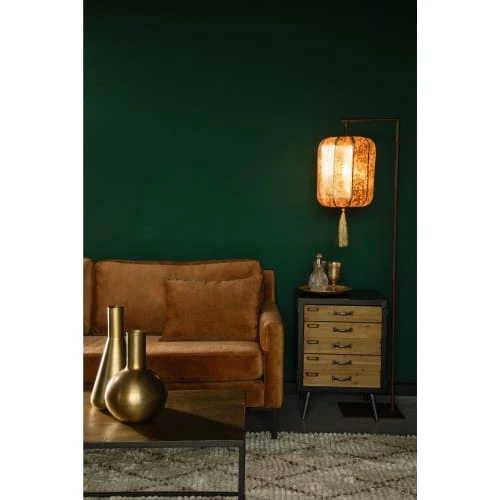 Maisons Du Monde Lampadaires Lampadaire En Métal Doré Et Abat-jour En Coton Bleu Nuit Recyclé H155