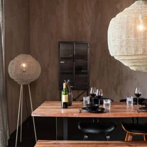 Maisons Du Monde Lampadaires Lampadaire En Bois De Manguier Et Abat-jour En Lin Et Rotin Beige H166