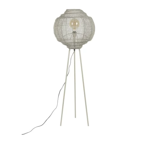 Maisons Du Monde Lampadaires Lampadaire En Tiges De Rotin Et Abat-jour En Lin Blanc H140