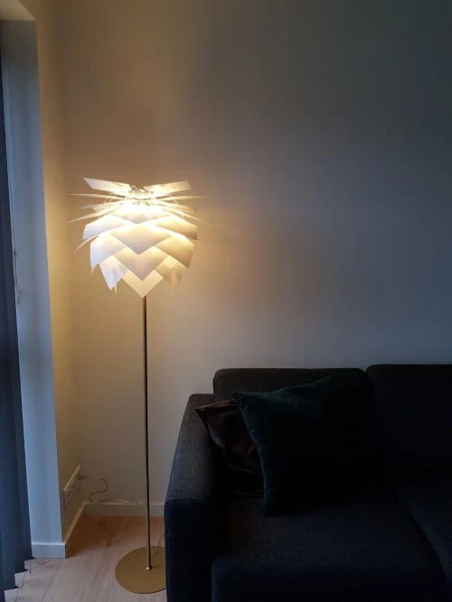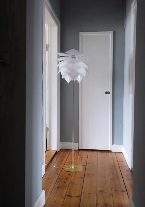 Maisons Du Monde Lampadaires Lampadaire En Bois D’ailante Beige Et Abat-jour En Tissu Blanc H169
