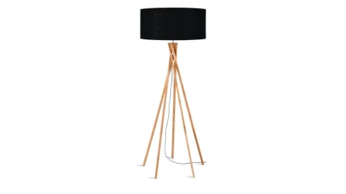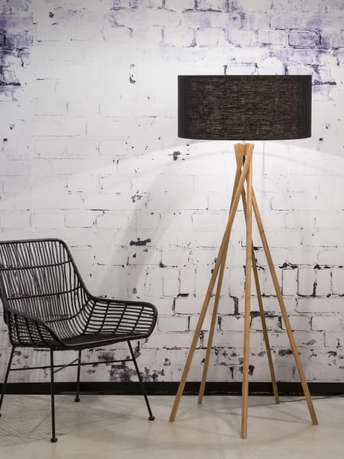 Maisons Du Monde Lampadaires Lampadaire En Métal Doré Et Abat-jour En Coton Bleu Nuit Recyclé H155