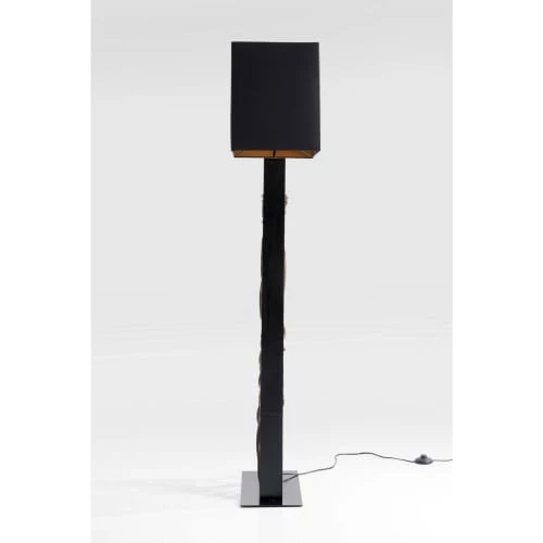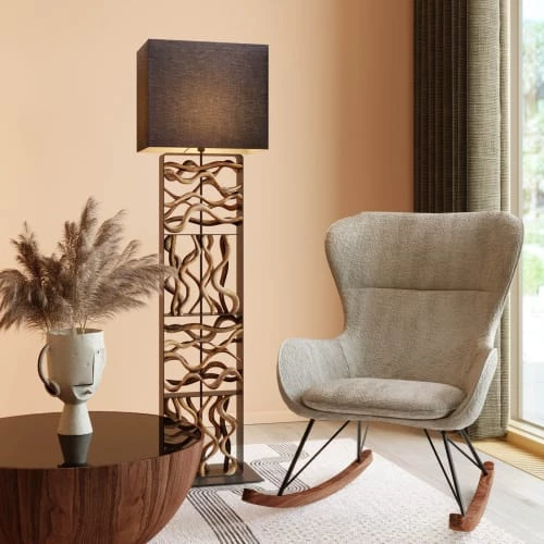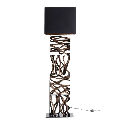 Maisons Du Monde Lampadaires Lampadaire En Bois Noir, Gris Et Beige, Abat-jour En Lin H154