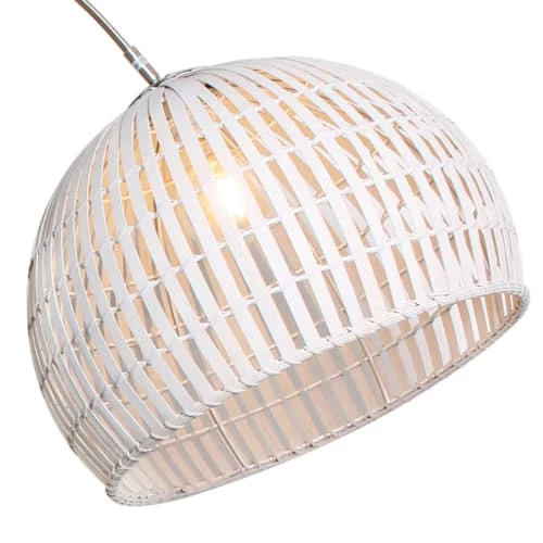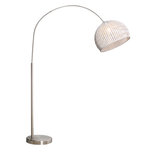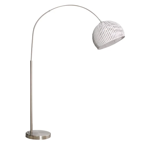 Maisons Du Monde Lampadaires Lampadaire En Bois De Manguier Et Abat-jour En Lin Et Rotin Beige H166