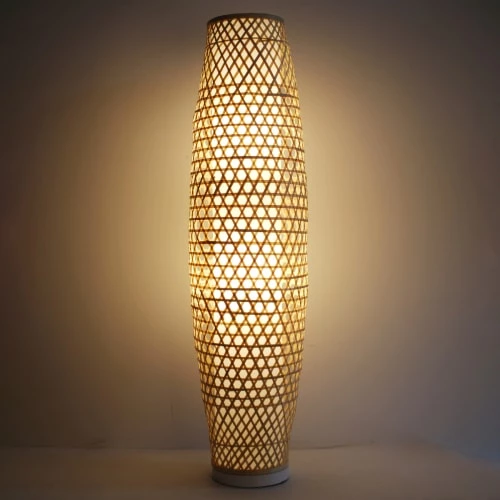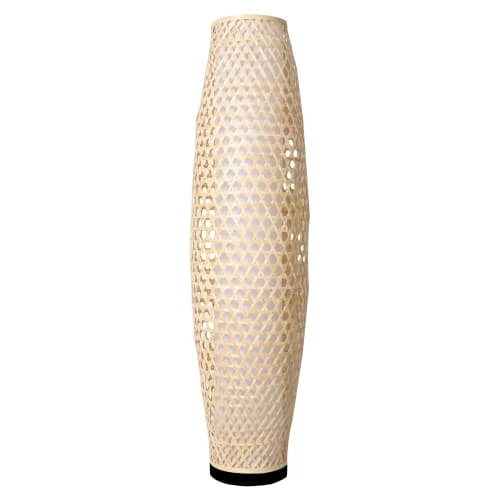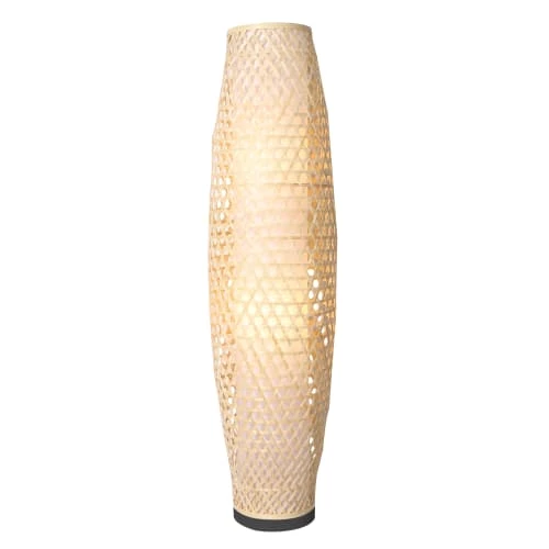 Maisons Du Monde Lampadaires Lampadaire En Bois De Manguier Et Abat-jour En Lin Et Rotin Beige H166