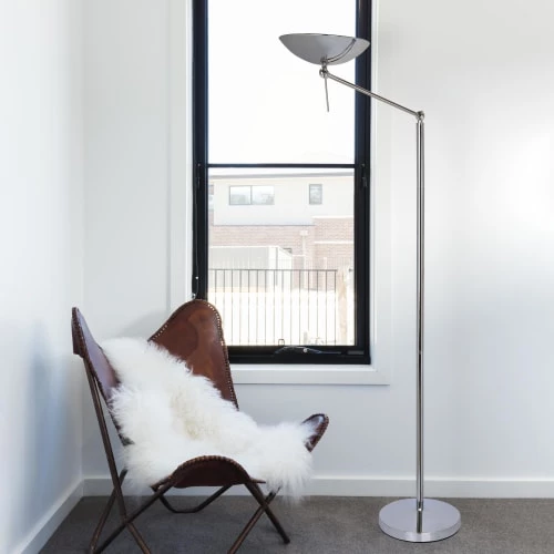 Maisons Du Monde Lampadaires Lampadaire En Bois D’ailante Beige Et Abat-jour En Tissu Blanc H169