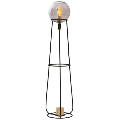 Maisons Du Monde Lampadaires Lampadaire En Bois D’ailante Beige Et Abat-jour En Tissu Blanc H169