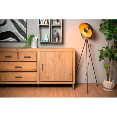 Maisons Du Monde Lampadaires Lampadaire En Métal Doré Et Abat-jour En Coton Bleu Nuit Recyclé H155