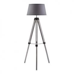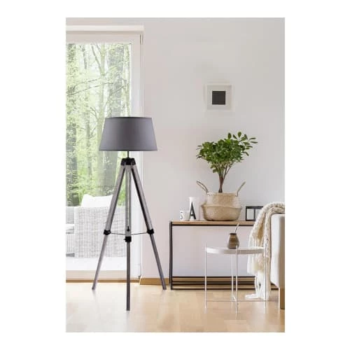 Maisons Du Monde Lampadaires Lampadaire En Bois Noir, Gris Et Beige, Abat-jour En Lin H154