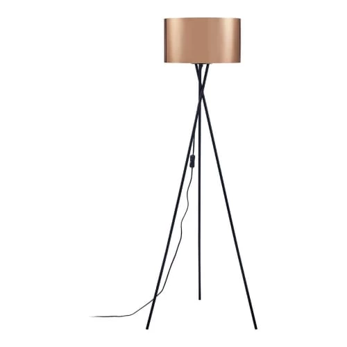 Maisons Du Monde Lampadaires Lampadaire En Métal Doré Et Abat-jour En Coton Bleu Nuit Recyclé H155