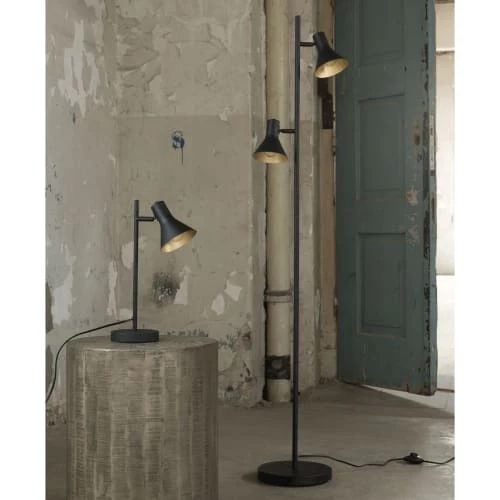 Maisons Du Monde Lampadaires Lampadaire En Métal Doré Et Abat-jour En Coton Bleu Nuit Recyclé H155