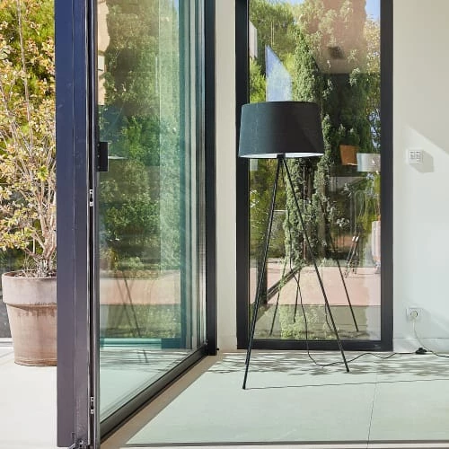 Maisons Du Monde Lampadaires Lampadaire En Métal Doré Et Abat-jour En Coton Bleu Nuit Recyclé H155