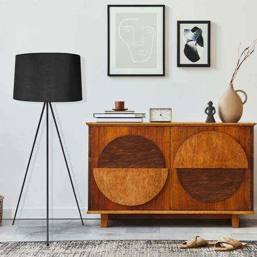 Maisons Du Monde Lampadaires Lampadaire En Bois Noir, Gris Et Beige, Abat-jour En Lin H154