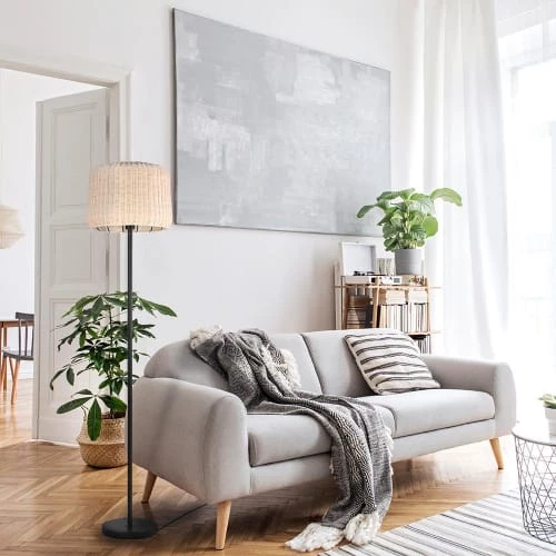 Maisons Du Monde Lampadaires Lampadaire En Tiges De Rotin Et Abat-jour En Lin Blanc H140