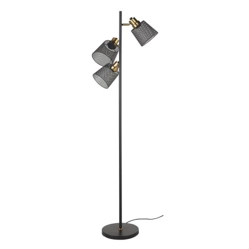 Maisons Du Monde Lampadaires Lampadaire En Métal Doré Et Abat-jour En Coton Bleu Nuit Recyclé H155