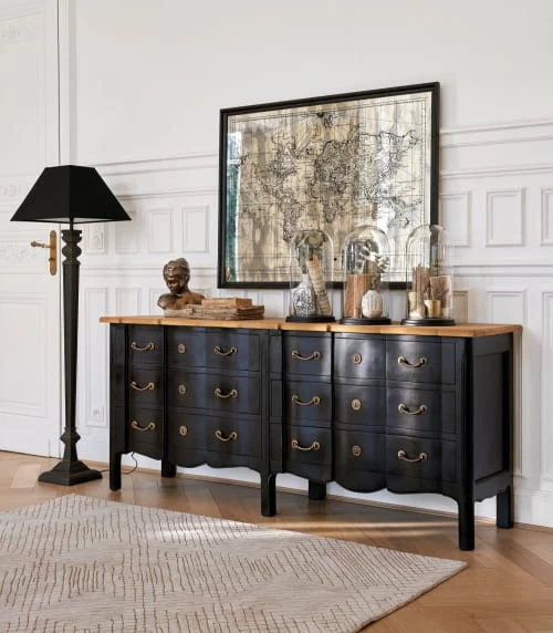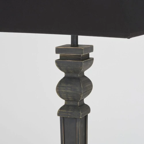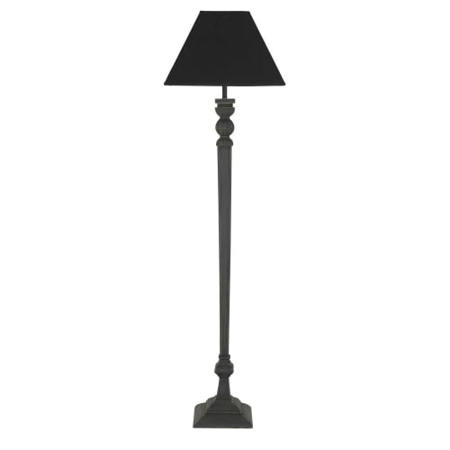 Maisons Du Monde Lampadaires Lampadaire En Bois Noir, Gris Et Beige, Abat-jour En Lin H154