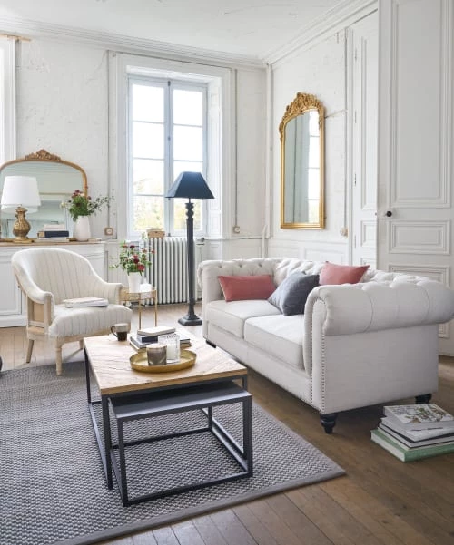 Maisons Du Monde Lampadaires Lampadaire En Tiges De Rotin Et Abat-jour En Lin Blanc H140