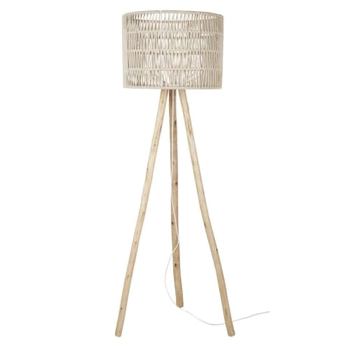 Maisons Du Monde Lampadaires Lampadaire En Bois De Pin Beige Et Abat-jour En Lin Recyclé H149