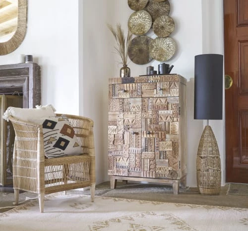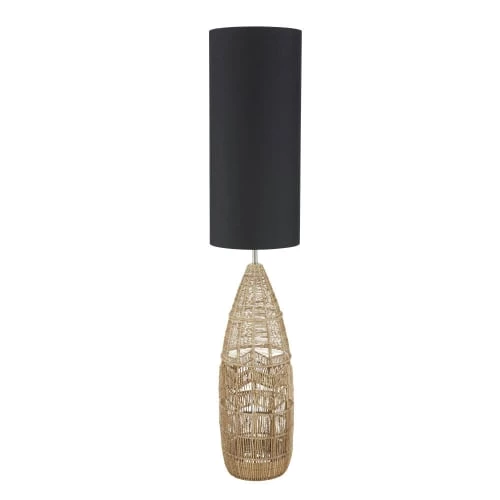Maisons Du Monde Lampadaires Lampadaire En Bois D’ailante Beige Et Abat-jour En Tissu Blanc H169