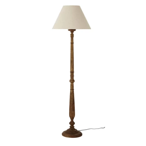 Maisons Du Monde Lampadaires Lampadaire En Bois De Pin Beige Et Abat-jour En Lin Recyclé H149