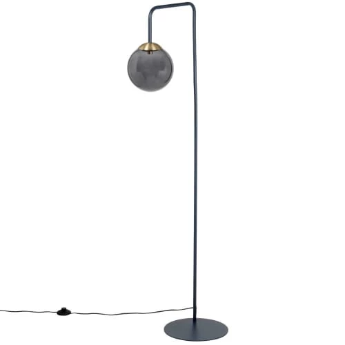 Maisons Du Monde Lampadaires Lampadaire En Métal Doré Et Abat-jour En Coton Bleu Nuit Recyclé H155