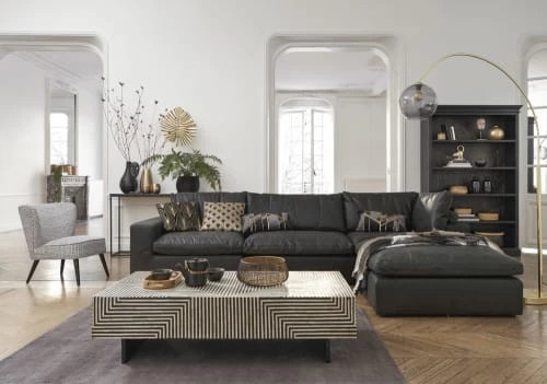 Maisons Du Monde Lampadaires Lampadaire En Bois Noir, Gris Et Beige, Abat-jour En Lin H154