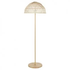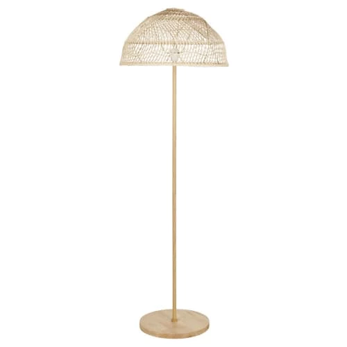 Maisons Du Monde Lampadaires Lampadaire En Métal Doré Et Abat-jour En Coton Bleu Nuit Recyclé H155