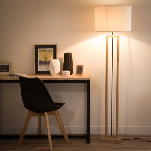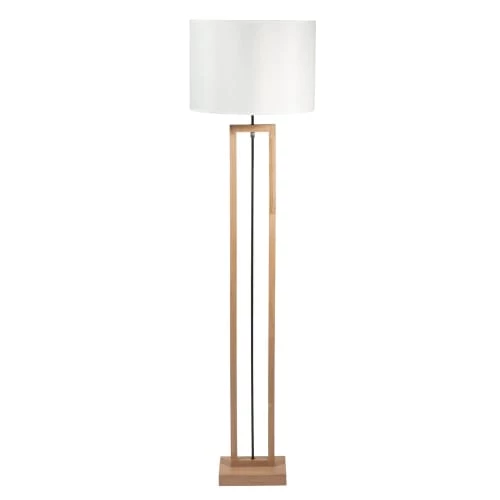 Maisons Du Monde Lampadaires Lampadaire En Bois D’ailante Beige Et Abat-jour En Tissu Blanc H169
