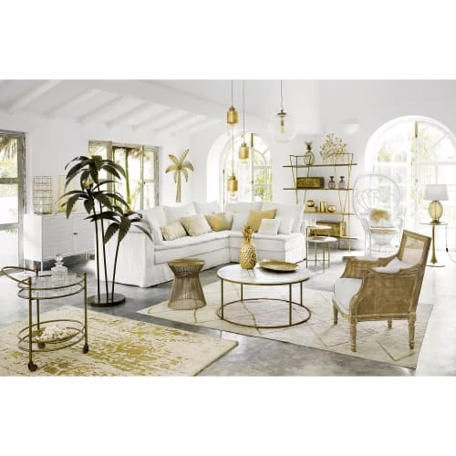 Maisons Du Monde Lampadaires Lampadaire En Tiges De Rotin Et Abat-jour En Lin Blanc H140