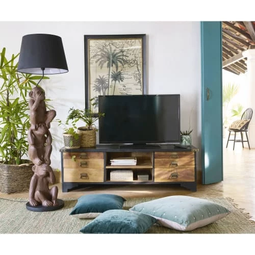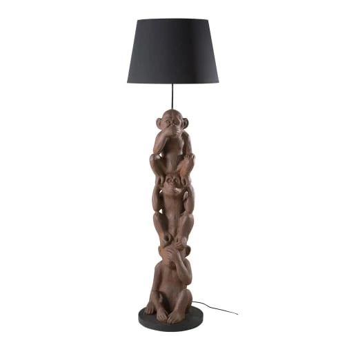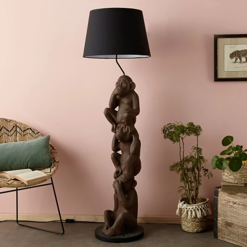 Maisons Du Monde Lampadaires Lampadaire En Bois D’ailante Beige Et Abat-jour En Tissu Blanc H169