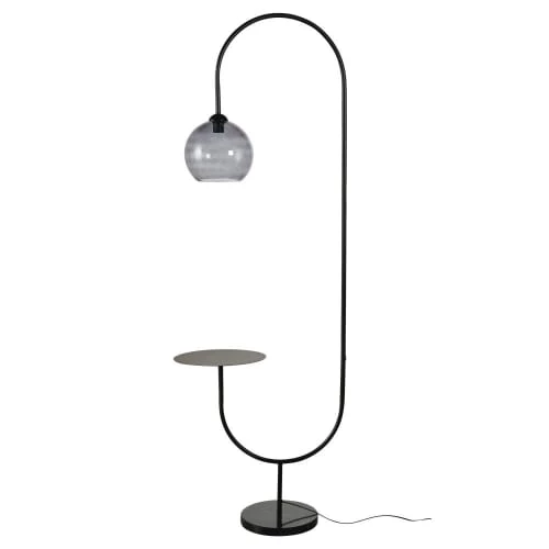 Maisons Du Monde Lampadaires Lampadaire En Métal Doré Et Abat-jour En Coton Bleu Nuit Recyclé H155