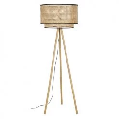 Maisons Du Monde Lampadaires Lampadaire En Bois De Manguier Et Abat-jour En Lin Et Rotin Beige H166