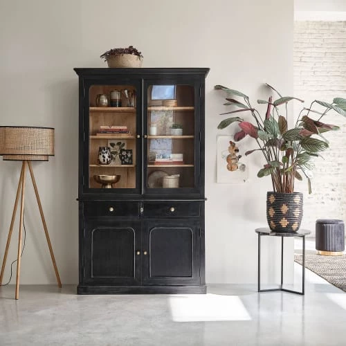 Maisons Du Monde Lampadaires Lampadaire En Bois Noir, Gris Et Beige, Abat-jour En Lin H154