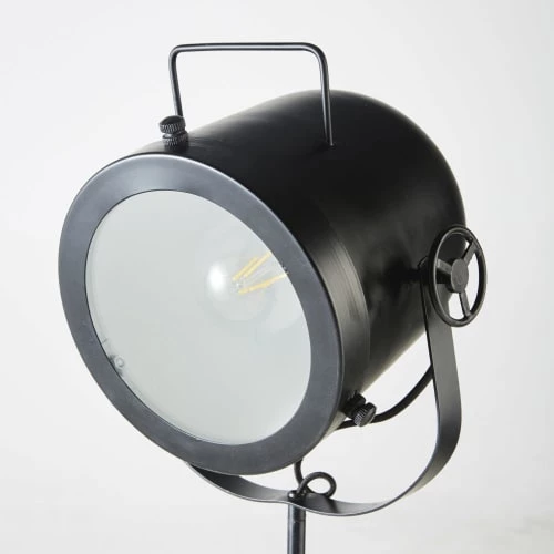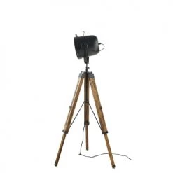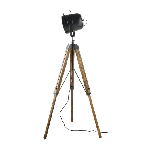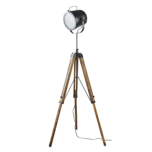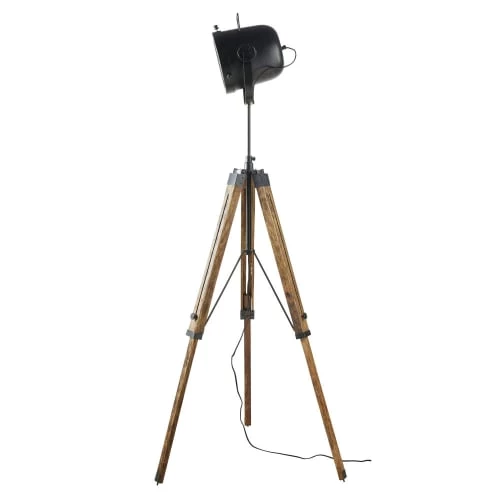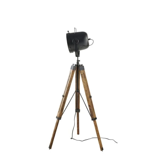 Maisons Du Monde Lampadaires Lampadaire En Bois Noir, Gris Et Beige, Abat-jour En Lin H154