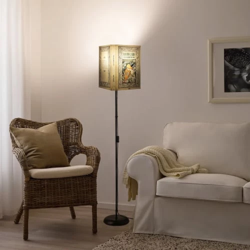 Maisons Du Monde Lampadaires Lampadaire En Tiges De Rotin Et Abat-jour En Lin Blanc H140