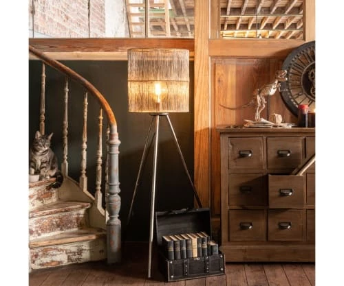 Maisons Du Monde Lampadaires Lampadaire En Tiges De Rotin Et Abat-jour En Lin Blanc H140