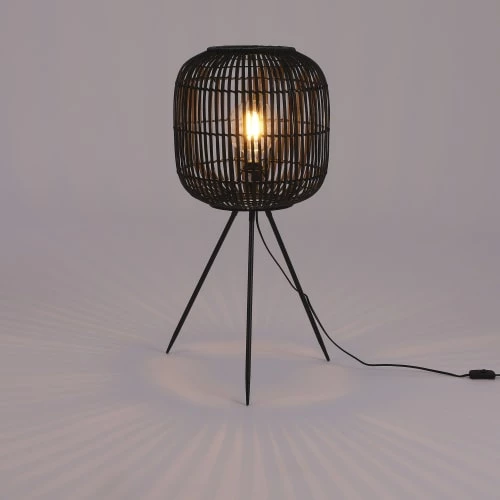 Maisons Du Monde Lampadaires Lampadaire En Tiges De Rotin Et Abat-jour En Lin Blanc H140
