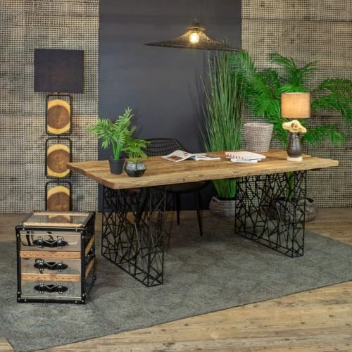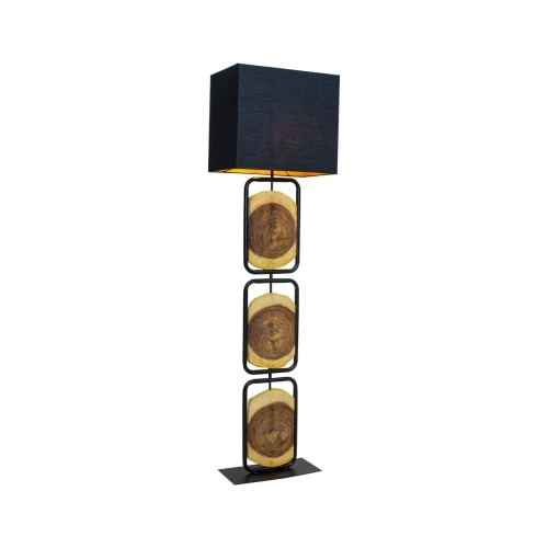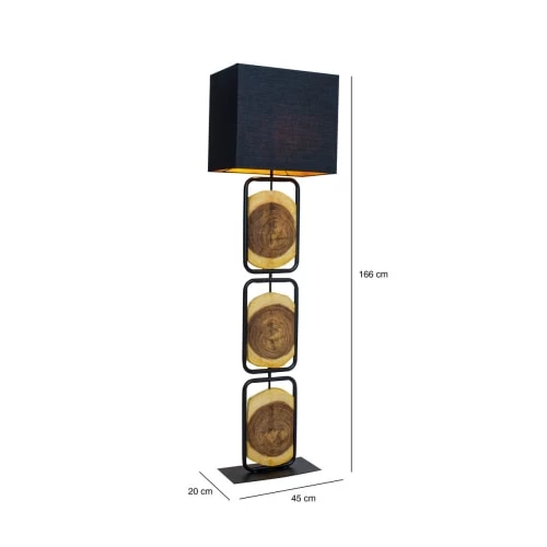 Maisons Du Monde Lampadaires Lampadaire En Bois De Manguier Et Abat-jour En Lin Et Rotin Beige H166