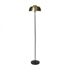 Maisons Du Monde Lampadaires Lampadaire En Métal Doré Et Abat-jour En Coton Bleu Nuit Recyclé H155