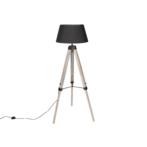 Maisons Du Monde Lampadaires Lampadaire En Bois D’ailante Beige Et Abat-jour En Tissu Blanc H169
