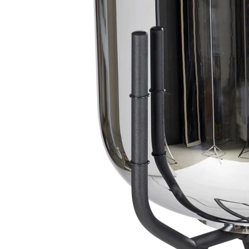 Maisons Du Monde Lampadaires Lampadaire En Bois Noir, Gris Et Beige, Abat-jour En Lin H154
