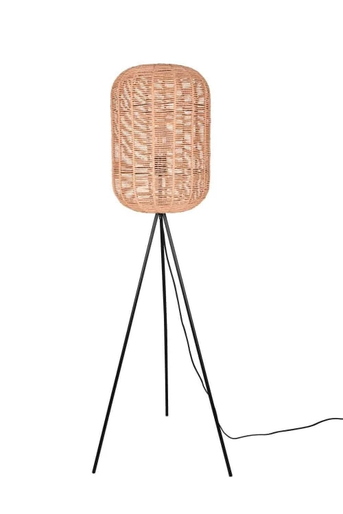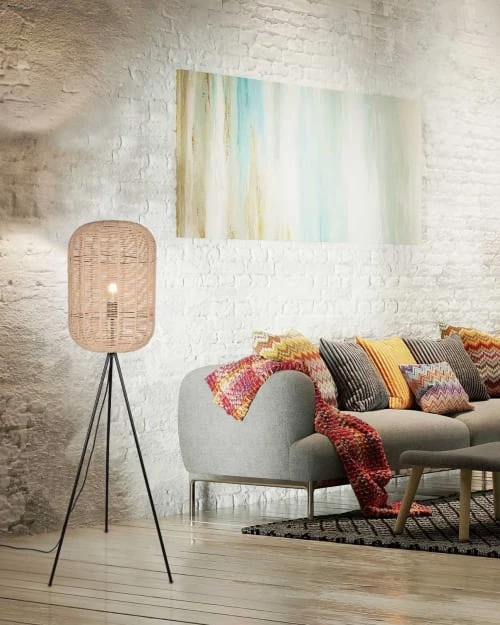 Maisons Du Monde Lampadaires Lampadaire En Métal Doré Et Abat-jour En Coton Bleu Nuit Recyclé H155