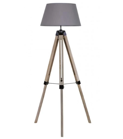 Maisons Du Monde Lampadaires Lampadaire En Bois Noir, Gris Et Beige, Abat-jour En Lin H154