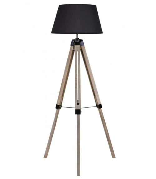 Maisons Du Monde Lampadaires Lampadaire En Bois Noir, Gris Et Beige, Abat-jour En Lin H154